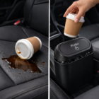 Ten kompaktowy kosz pozwala w kilka sekund pozbyć się śmieci i utrzymać wnętrze auta w idealnym porządku.